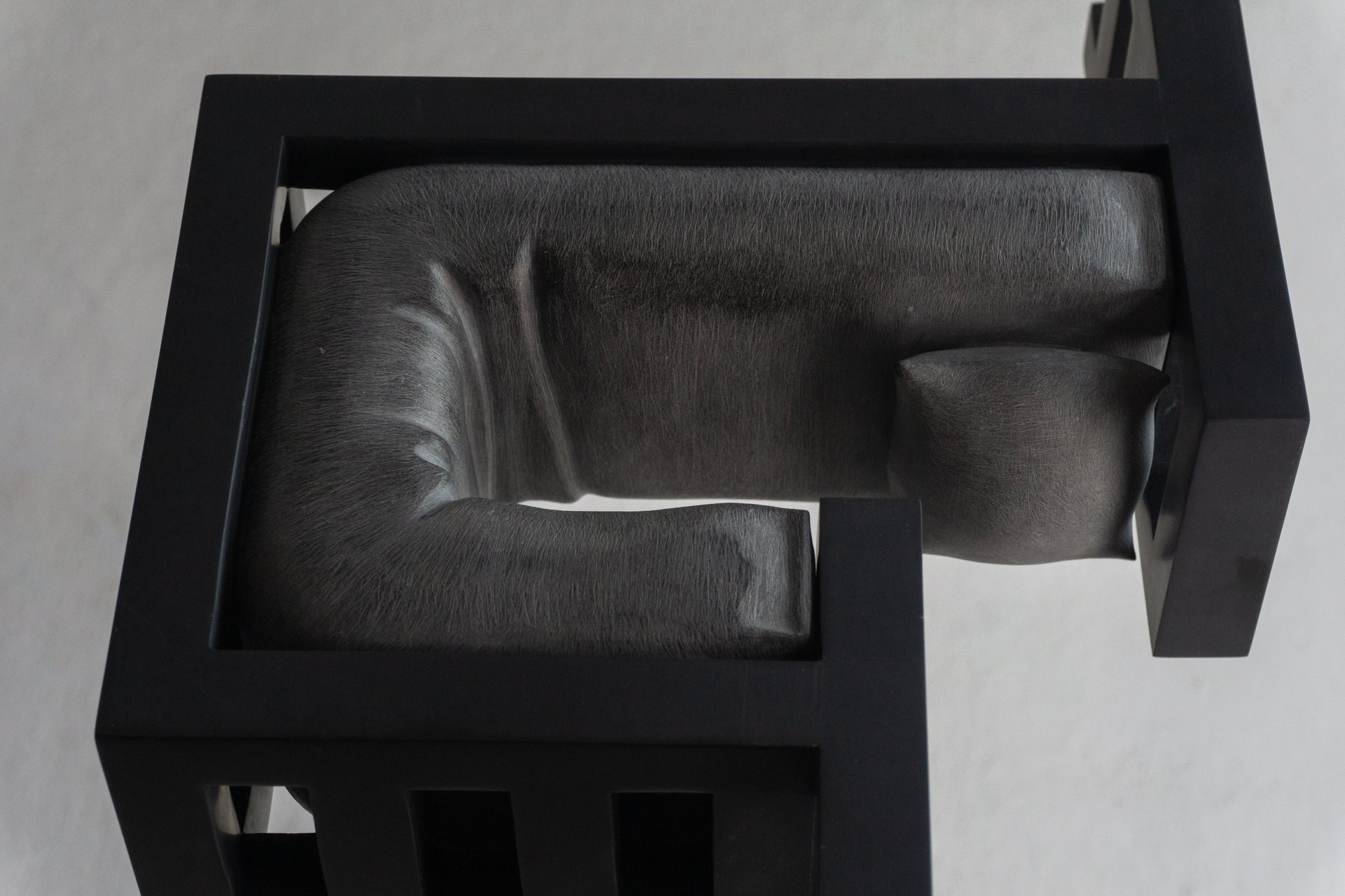 Quest’opera rappresenta un momento di passaggio. La struttura quasi architettonica e rigida ricorda una rete da letto: simbolo di immobilità, di gabbia.
